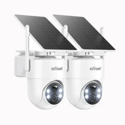 ieGeek 2K/3MP 360 PTZ Security Camera Outdoor Wireless with Removable Solar Panel,Continuous Power 2.4G WIFI CCTV Camera,PIR Motion Detection,Color Night Vision,APP Alert,IP65,Alexa Compatible(2pcs)