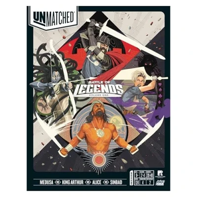 Unmatched is an asymmetrical miniature and card game where players battle it out to be the no. 1 fighter! Battle of Legends Volume Two includes four legendary heroes: Medusa, King Arthur, Alice and Sinbad! Each hero has a unique deck of cards that fits their fighting style – but remember, in the end, there can only be one winner Mix and match fighters from any Unmatched set! Suitable for 2 to 4 players aged 14 and up, Manufacturer: IELLO