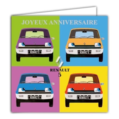 IETSCPMD15167 Happy Birthday Card Silver Renault 5 POPART Officially Licensed Auto Passion & Collections Retro Vintage with White Envelope Size 15 x cm Made in France