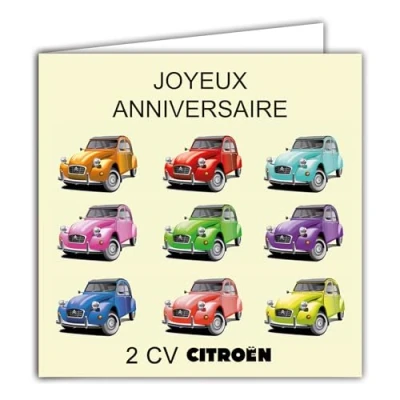 IETSCPMD15184 Happy Birthday Card Citroen 2CV POPART Officially Licensed Auto Passion & Collections Retro Vintage Car With White Envelope Size 15 x cm Made in France