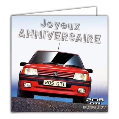 IETSCPMD16131 Happy Birthday Card Silver Peugeot 205 GTI Officially Licensed Auto Passion & Collections Retro Vintage with White Envelope Size 15 x cm Made in France