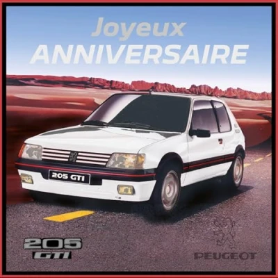 IETSCPMD16132 Happy Birthday Card Silver Peugeot 205 GTI Officially Licensed Auto Passion & Collections Retro Vintage with White Envelope Size 15 x cm Made in France