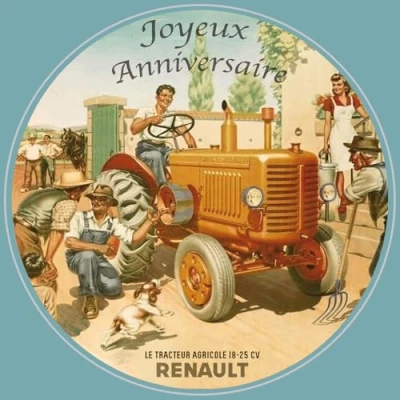 IETSCPMD19311 Happy Birthday Farm Tractor Card 18 25 HP Renault Official Licence Passion & Collections Retro Vintage Peasant With White Envelope Size 15 x cm Made in France