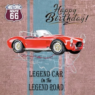 IETSCPMD6602 Happy BirtHDAY Silver Square Card with White Envelope Format 15 x cm Route 66 Historic Road R66 Cobra/Official Licence Interior Made in France