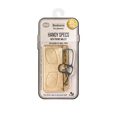 Re-usable: comes in superior quality leather-look PU and sticks securely to your phone Flat mini-magnifying Specs, pince-nez style are included so that they are always to hand when you need a little help to read notes, labels, receipts, texts, menus or any small print Magnifying readers comes in one strength - (+2.0) to suit all - just adjust the distance by holding them further away or closer to you The phone fits most phone sizes and the glasses fit most face shapes with a clever design that allows you to squeeze and nip gently to your nose Comes in 4 different 'Bookaroo' Colours so that you can co-ordinate your handy Specs with your other Bookaroo items