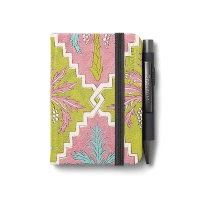 IF Bookaroo Notebook A7 Pocket and Handbag size plus Black Ballpoint Pen, 192 pages Pastels Charcoal Palm