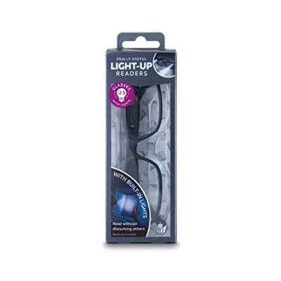 Reading glasses with LED lights Read after dark without disturbing others 11 classic frame styles - something to suit everyone Available in 3 popular lens strengths Each arm is independently 'switchable'