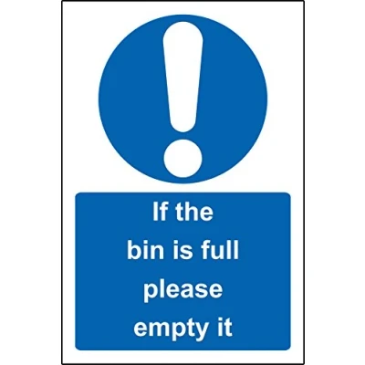 If the bin is full please empty it Safety sign Self adhesive sticker 100mm x 150mm