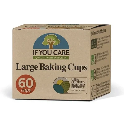 If You Care Large Baking Cups are perfect for both sweet and savoury goods.Made from unbleached, totally chlorine-free (TCF) greaseproof paper, these baking cups have easy release properties perfect for use to make cupcakes, muffins, mini quiches and other recipes.All If You Care paper products are complete chlorine-free and therefore no chlorine derivatives will be dumped into lakes, streams or rivers.Set includes 60 large baking cups.