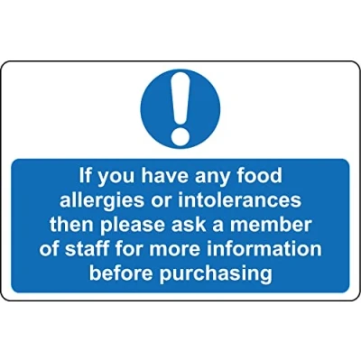 If you have any food allergies or intolerances please let me a staff member know sign 1mm Plastic (150mm x 100mm)
