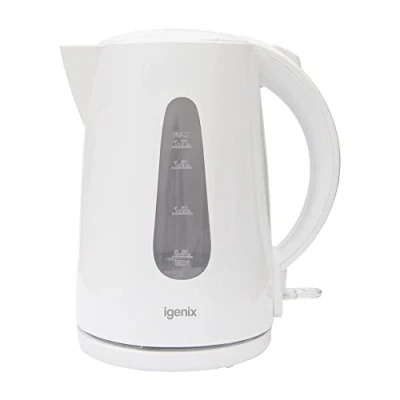 General description This Igenix IG7105 1.7 litre white cordless kettle is a staple of any kitchen, featuring a rapid boil function that allows you to quickly prepare your perfect cup of tea or coffee. The large blue illuminated water window ensures you can easily see the water level, preventing overfilling, while the removable and washable filter helps maintain the quality of your beverages. Technical specifications Capacity: 1.7 litres Power: 3000W