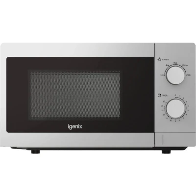Igenix 20L 800W Silver Manual Microwave 5 Power Levels, Defrost Setting, 35 Min Timer, Push Button Door, 255mm Turntable IGMS08080S