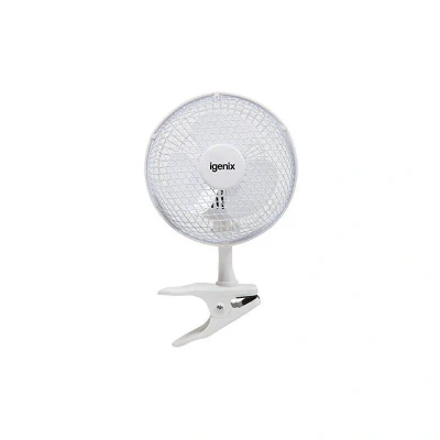 General description This 6 inch white clip on fan is ideal for use in the home or in the office. Use the adjustable tilt angle and 2 speed settings to achieve the perfect stream of cool air; with its quiet operation, the Igenix DF0006 clip on desk fan is perfect for keeping cool without causing unnecessary distraction.