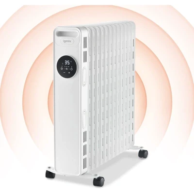 Igenix IG2626 Digital Oil Filled Radiator, 2.5kW/2500W 13 Fin Electric Heater with Remote Control, 3 Adjustable Heat Settings & Overheat Protection, 2500 W, White