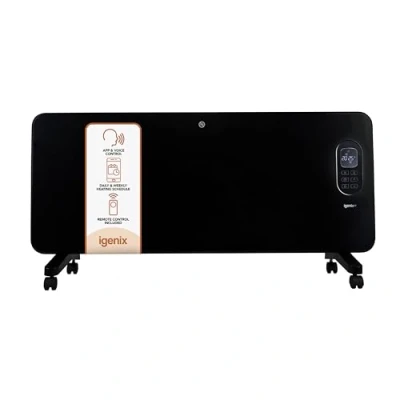 VOICE-ACTIVATED CONVENIENCE: Seamlessly control this smart technology-integrated panel heater using Alexa through your Echo or other compatible devices, granting you hands-free command over its functions. SMART LIFE APP INTEGRATION: Take charge of the panel heater effortlessly by downloading the Smart Life App from popular app stores. Adjust settings, manage temperature, and personalize your heating experience with ease. ADAPTABLE PLACEMENT: Versatile in design, this heater offers the flexibility to be placed either freestanding or mounted on the wall, allowing you to optimize space according to your needs. CUSTOMIZABLE HEATING SCHEDULES: Enjoy precise control over your heating schedule with daily or weekly timer settings, tailoring the warmth to match your preferences and daily routine. MOBILITY AND REMOTE ACCESSIBILITY: Equipped with rolling castors for easy movement and complemented by a convenient remote control, this heater ensures effortless relocation and usage convenience wherever you are., Manufacturer: Igenix
