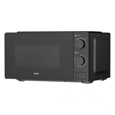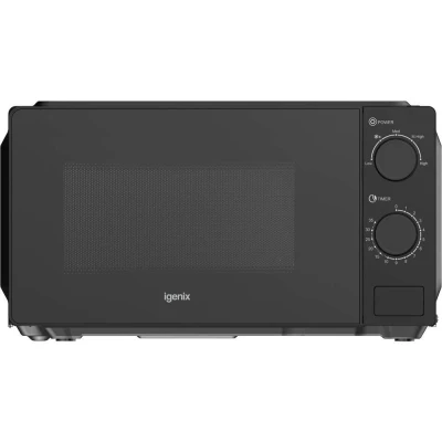 Igenix IGMS02071B 20L 700W Manual Microwave 5 Power Levels, Defrost Setting, 35 Min Timer, Push Button Door, 245mm Turntable Black