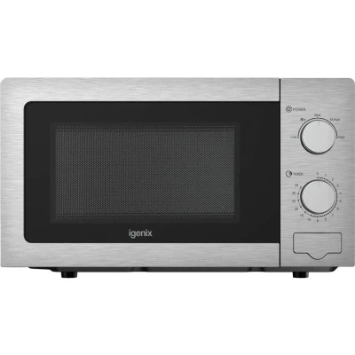 Igenix IGMS02081SS 20L 800W Manual Microwave 5 Power Levels, Defrost Setting, 35 Min Timer, Push Button Door, 255mm Turntable Stainless Steel