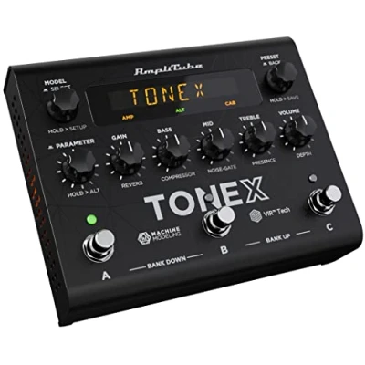 Play thousands of ultra-realistic Tone Models of guitar pedals, guitar amplifier, even a full guitar pedal board with this revolutionary guitar multi effects pedal Includes 1000 premium TONEX Tone Models, each based on a famous amplifier for electric guitar, wah pedal, distortion pedal for electric guitar, overdrive pedal for electric guitar, or full pedalboard Share unlimited user-created presets and model your own guitar effects pedal or guitar effects pedal board, all based on real gear, with the included TONEX MAX Mac/PC software Exclusive VIR multi-IR cabinets and custom IR Loader, and onboard noise gate, EQ, compressor and 5 stereo reverbs - no need for a reverb pedal, noise gate pedal, eq pedal or other guitar effect pedal Built-in expression pedal and full MIDI I/O to integrate with a looper guitar pedal, delay pedal, loop pedal, or other multi effects pedals for electric guitar for the ultimate pedalboard | TONEX librarian for preset transfer/organization