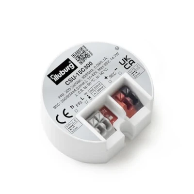 LED POWER SUPPLY CSU-15C300: input voltage 220 - 240 V (AC), output current 300mA / 350 mA constant with voltage range 15 - 42 V (DC), not dimmable, built-in installation, Connection with spring terminals. OUTPUT POWER: adjustable output (output current: power range) 300 mA: 4,5 - 12,5 W / 350 mA: 5,5 - 15 W, setting via DIP switch, ideal for a single LED or multiple LEDs in series with a constant operating current from 300 mA to 400 mA. FLICKERFREE: flickerfree light source provides better eye protection and ensures high quality video recording. INSTALLATION: protection type IP20, dimension 49 x 45 x 23 mm (L x W x H), operating temperature (ta) -20 - +60 °C, max. surface temperature (tc) 90 °C. Please check the instruction pictures for more details. SECURITY: equipped with overload protection, short circuit protection and overheating protection. certification CE, UKCA. ADVICE: this LED power supply does not deliver 12 V or 24 V constant voltage output. We are happy to recommend a suitable LED power supply for your application if we have the technical data (ideally with a photo of the LEDs or the old LED driver).