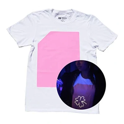 Illuminated Apparel Interactive Glow in The Dark T Shirt Fun for Birthday Parties & Festivals Light up Night (9 11 Years, White/Pink Glow)
