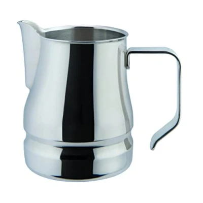 Milk jug made of 18/10 stainless steel Ergonomic handle for perfect grip 6 cup milk jug to decorate the cappuccino The spout allows precise control of the pouring milk The groove accelerates the swirling milk flow