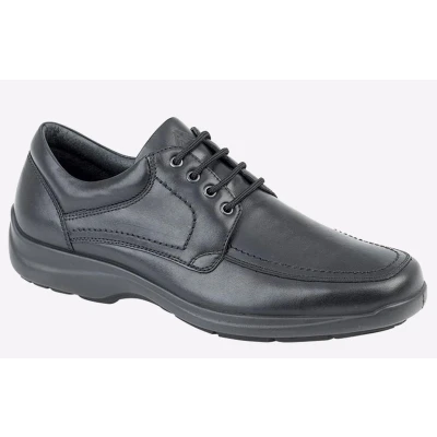 Delivering versatile charm and a classic look, these Imac Vale leather men's shoes are a standout choice for work or smart-casual occasions, boasting a sleek black leather upper, intricate stitch detailing, and a durable rubber outsole. - Leather upper- Secure lace fastening - Padded ankle collar - Intricate stitch detailing - PU Sole
