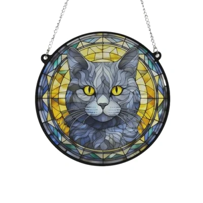Image Industry Cat British Shorthair Stained Glass Effect Suncatcher Garden Gift Pet Memorial (19cm)