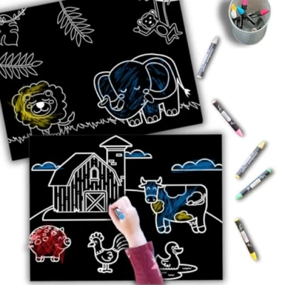 【Reusable and Easy to Clean】 The Imagination Starters Travel Colouring Set offers 2 double-sided mats and 4 washable, no mess, no chalk dust crayons. These kids travel games are ideal for toddler travel toys, providing mess free colouring for toddlers and non-digital creative play! 【Portable and Convenient】 Designed for drawing and colouring on the go, this travel set is a toddler travel essential. Perfect for travel games for kids on plane and road trip essentials, ensuring mess free colouring and easy clean-up with just a wipe or damp cloth - its wet wipe-able! 【Four Colouring Surfaces】 17 inches X 12 inches - The set includes 4 colouring and drawing surfaces, making it a versatile choice for travel games for kids. These airplane travel essentials kids will love are reusable and easy to clean, making them perfect for travel toys for toddlers on plane - provides hours of colouring fun for all ages! 【Ideal for Long Journeys】 This set serves as excellent travel games for kids on plane, providing endless entertainment. These toddler travel toys ensure mess free colouring and are road trip essentials, enhancing the travel experience for young children. 【Identify Colours and Build Motor Skills】 Encourages the development of fine motor skills through hands-on colouring activities, while also helping children learn to identify and differentiate between colours in a fun and engaging way!