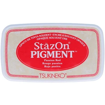 Go CraftStazon Pigment Ink Pad Passion RedOpaque Solvent Ink, For use on non-porous surfaces such as plastic, metal, glossy papers and more. Drying time varies by surfaceand amount of ink applied. Keep pad covered when not in use. Ink Pad size - 75 x 35mm - Case 96 x 56mm. TS0802. SZ-PIG-021