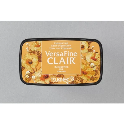Summertime Versafine Clair Ink Pad with Increased functionality.. The ink pad has a lift off lid providing easier access. Increased control when inking stamps. The slimmer 2 part container is easier to handle and air tight. It is the same ink quality but the pigment is deeper/stronger. Vibrant and vintage shades. More contemporary label designs. Embossable. More suitable for modern stamps, the solid lines in images now appear much sharper. VF-CLA-701