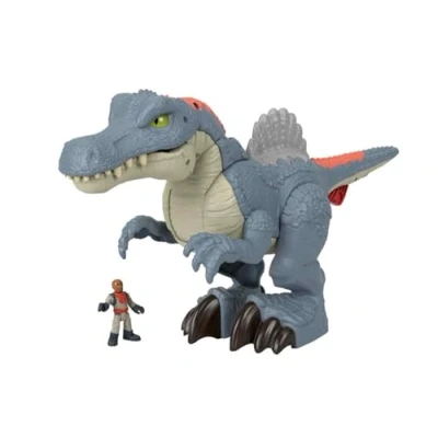 Kids can create their own exciting Jurassic World stories with this large Spinosaurus dinosaur toy (7.8 inches long) with an awesome snap attack feature and included toy figure Squeeze the tail trigger and the dinosaur’s head rears back and the mouth opens to snap down and attack Trigger activates the multi-colored fin lights plus light-up eyes and cool dinosaur sounds Look for additional Imaginext Jurassic World dinosaurs, vehicles and playsets for more preschool-friendly pretend play! (Each sold separately and subject to availability.) Inspired by the Jurassic World franchise; Encourages imaginative play and storytelling for preschool kids ages 3 to 8 years old, Manufacturer: Mattel
