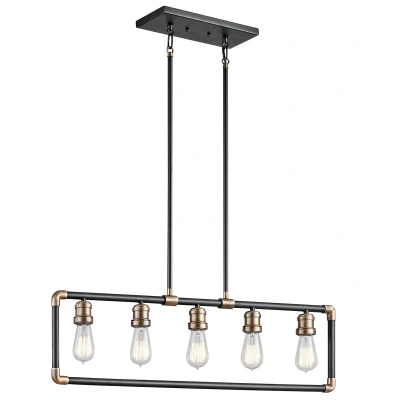 Imahn 5 Light Ceiling Chandelier Pendant Bar Black, Natural Brass, E27
