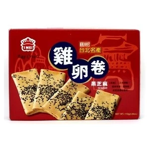 I-Mei Taipei Egg Roll Black Sesame Flavor 66g features classic handmade, crispy egg rolls infused with rich black sesame aroma. Individually wrapped for freshness, these rolls make a perfect tea-time snack and are crafted with high-quality ingredients by the renowned Taiwanese brand I-Mei.