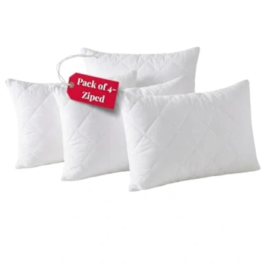 IMFAA Quilted Zipped Pillow Protector Pack of 4 Soft and Comfortable Microfiber Pillowcase Protectors Ant Allergy Breathable Cover.(4 x Zipped)