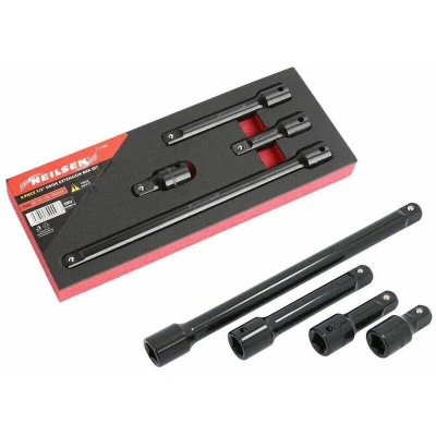 General description This Heavy Duty 4PC 1/2 Drive Impact Socket Extension Bar Set includes four extension bars of varying lengths, designed for use with impact sockets. The set is made from durable chrome vanadium steel, ensuring strength and longevity. Technical specifications Drive Size: 1/2 inch Extension Bar Sizes: 50mm, 75mm, 125mm, 250mm Material: Chrome Vanadium Steel Other information 1 Year Warranty Included