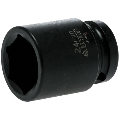 General description This Teng Impact Socket is a hexagonal impact socket designed for use with impact wrenches. Made from high-quality chrome-molybdenum steel, it offers durability and strength for demanding tasks. The socket features a hexagonal drive and a secure locking hole for safety pin installation, ensuring a firm connection to the tool. Technical specifications Size: 24mm Outer diameter (D1): 35.0 mm Inner diameter (D2): 30.0 mm Length: 38.0 mm Material: Chrome-molybdenum steel Color: Black Standards: DIN Compatibility and accessories Compatible with impact wrenches and ratchets that accept ½ inch drive sockets Includes a hole for safety pin to secure the socket on the tool Installation Insert the socket onto the square drive of your impact wrench or ratchet Secure it with a safety pin through the provided hole for safety Usage Use with impact tools for tightening or loosening nuts and bolts Ensure the safety pin is properly installed before operation for secure use Other