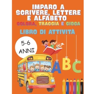 Imparo a Scrivere, Lettere e Alfabeto : Colora, Traccia Gioca: Libro di Attività per bambini 5 6 anni