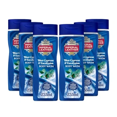 Imperial Leather Blue Cypress & Eucalyptus Body Wash Shower Gel, Rich Creamy Lather Long lasting Luxury Fragrance, Vegan Cruelty Free (6 x 235ml)