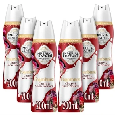 Imperial Leather Cherry and Snow Blossom Foamburst Gel to Foam Body Wash Shower Gel, Luxurious Lather, Gentle Skin Care, Bulk Buy, Multipack of 6 x 200ml