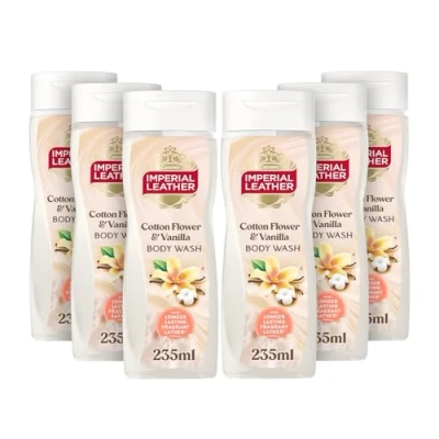 Imperial Leather Cotton Flower & Vanilla Body Wash Shower Gel, Rich Creamy Lather Long lasting Luxury Fragrance, Vegan Cruelty Free (6 x 235ml)