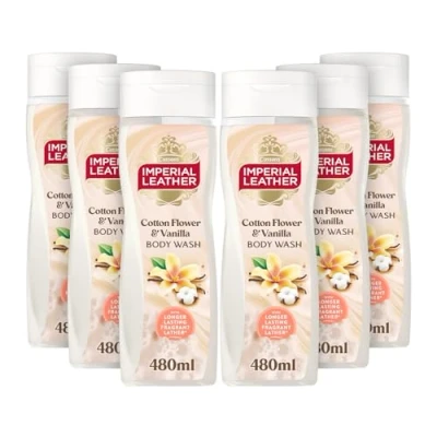 Imperial Leather Cotton Flower & Vanilla Body Wash Shower Gel, Rich Creamy Lather Long lasting Luxury Fragrance, Vegan Cruelty Free (6 x 480ml)