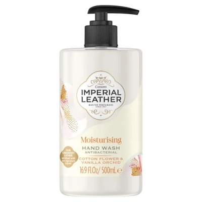 Imperial Leather Moisturising Antibacterial Hand Wash with Cotton Flower&Vanilla Orchid offers a luxurious, creamy lather and a sophisticated fragrance blend of Seville orange, cassis, and sandalwood. Vegan-friendly and deeply moisturizing, it leaves hands soft, clean, and delicately scented.