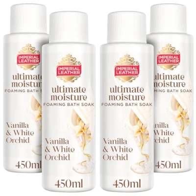 Imperial Leather Ultimate Moisture Vanilla & White Orchid Foaming Bath Soak, Ultra Rich Lather Fragrance, Suitable for Sensitive Skin Vegan Cruelty Free (450ml), Multipack 4 x 450ml