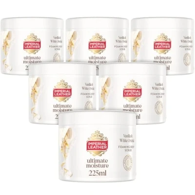 Imperial Leather Ultimate Moisture Vanilla & White Orchid Foaming Exfoliating Body Scrub, Ultra Rich Lather, Suitable for Sensitive Skin, Vegan Cruelty Free (225ml), Multipack 6 x 225ml