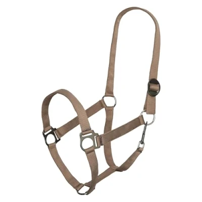 Imperial Riding Economic Headcollar, Robust 25 mm Nylon Adjustable Sliding Buckle, Carabiner Throat Strap, Durable & Easy to Clean, for Training, Stable Everyday Life, Cappuccino, Full