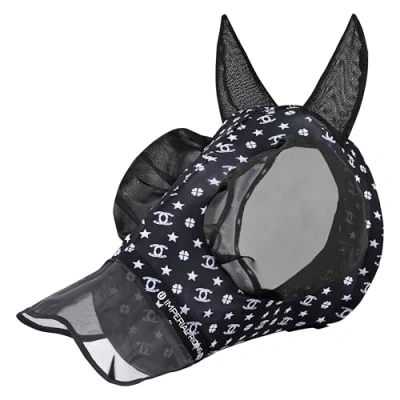 Imperial Riding Trail Ride Fly Mask with Nose Guard Black AOP Pony