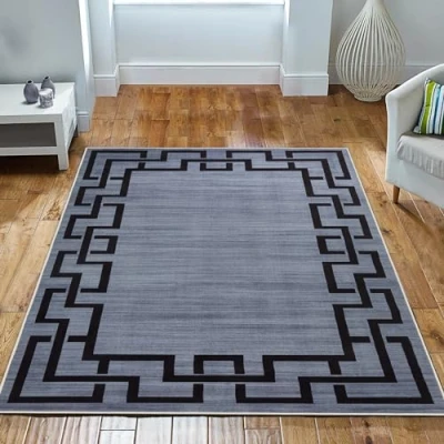 Imperial Rooms Area Rugs for Bedroom Grey Living Room 120 x 170 Cm Modern Floor Carpet Greek Key Style Non Shedding Super Soft Rug Easy to Clean (Nico)