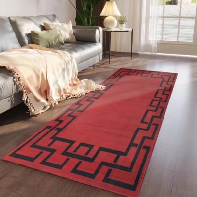 Imperial Rooms Area Rugs for Bedroom Runner Hallway Greek Key style Non Shedding Red Living Room Soft Touch Modern Floor Carpet Runners Easy Care (60 x 220Cm, Lexi)
