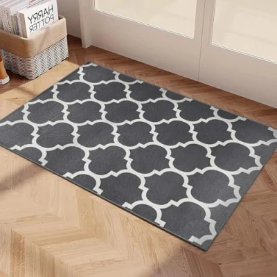Imperial Rooms Area Rugs Living Room for Bedroom Modern Floor Carpet Trellis Style Non Shedding Durable Super Soft Ava Grey Small Rug (40 x 60Cm)