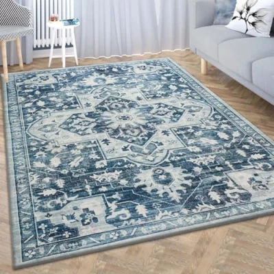 Imperial Rooms Area Rugs Living Room Washable Rug for Bedroom Non Slip 80x150 cm Short Pile Cashmere Design Vintage Easy to Clean Soft Carpets Lounge Office (Tranquil)